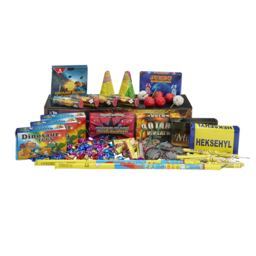 Med dette Panther juniorsortiment i farverige små æsker, der er samlet i en let transportbox med strop, får du hele 102 dele til junior. Heksehyl, Romerlys, Dino æg, Sølv fontæner, Spinnere, crackling balls mm.